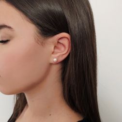 • Photo of worn 8.5mm Akoya Pearl and 0.11ct Diamond Earrings